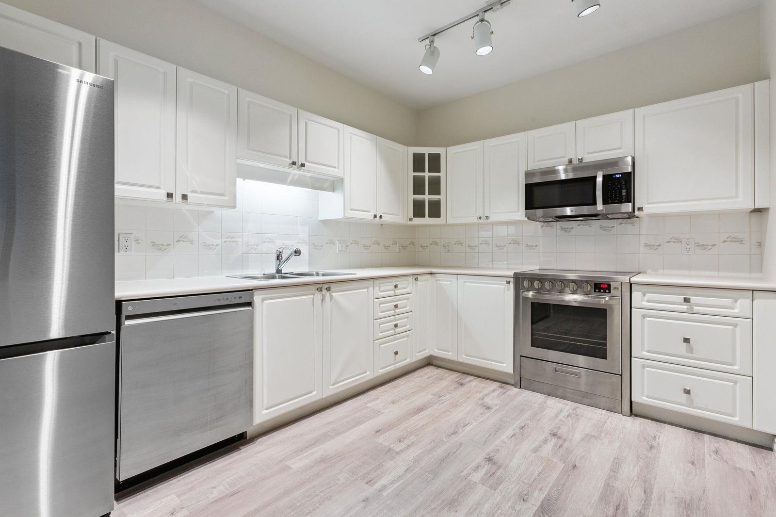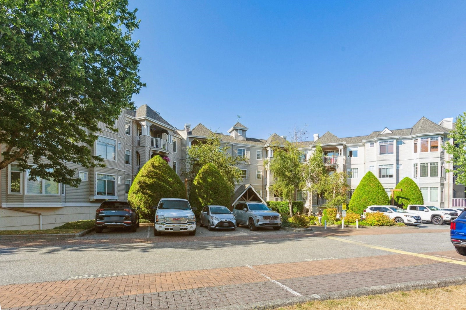 Welcome to this extra large 1 bed home that feels more like a house than a condo. Generously sized to fit full-scale furniture, this beautifully maintained suite with new flooring offers space for a dining table, perfect for entertaining. The bedroom easily accommodates a king-size bed, while the expansive kitchen features new full-size appliances and ample counter space for cooking and hosting. Enjoy the convenience a large laundry room with additional storage. Step outside to your own private, covered deck an ideal spot for year round relaxation. Located in a quiet, well-managed, rainscreened building with new plumbing (fully paid for by the seller). 1 prk 1 storage. Walking distance to downtown Langley, Kwantlen, transit, amenities.