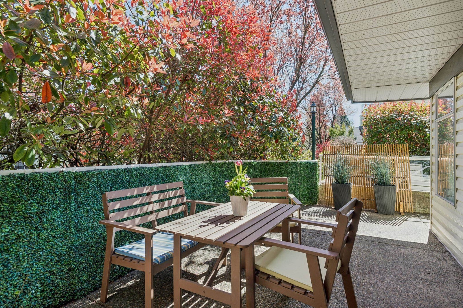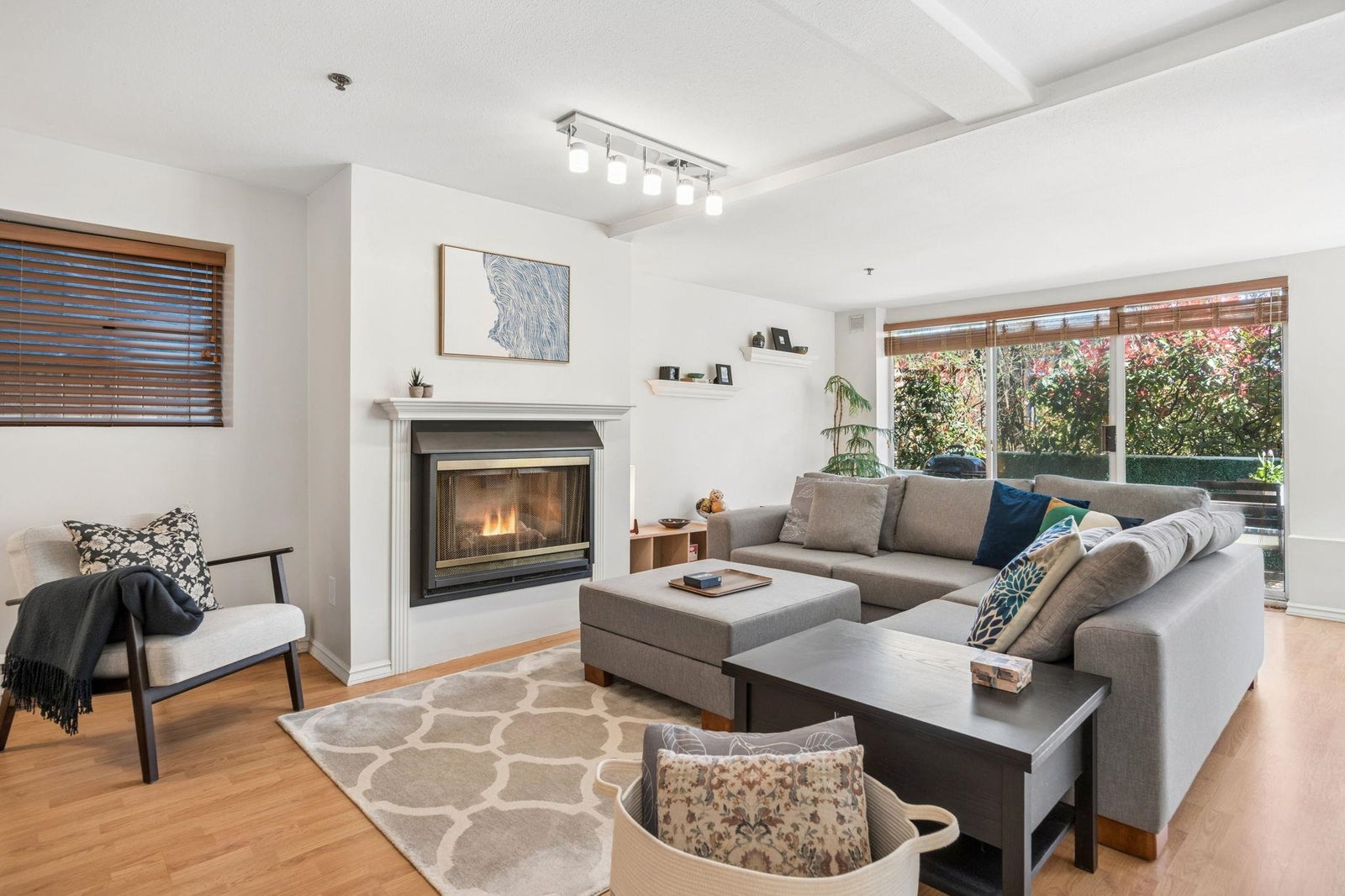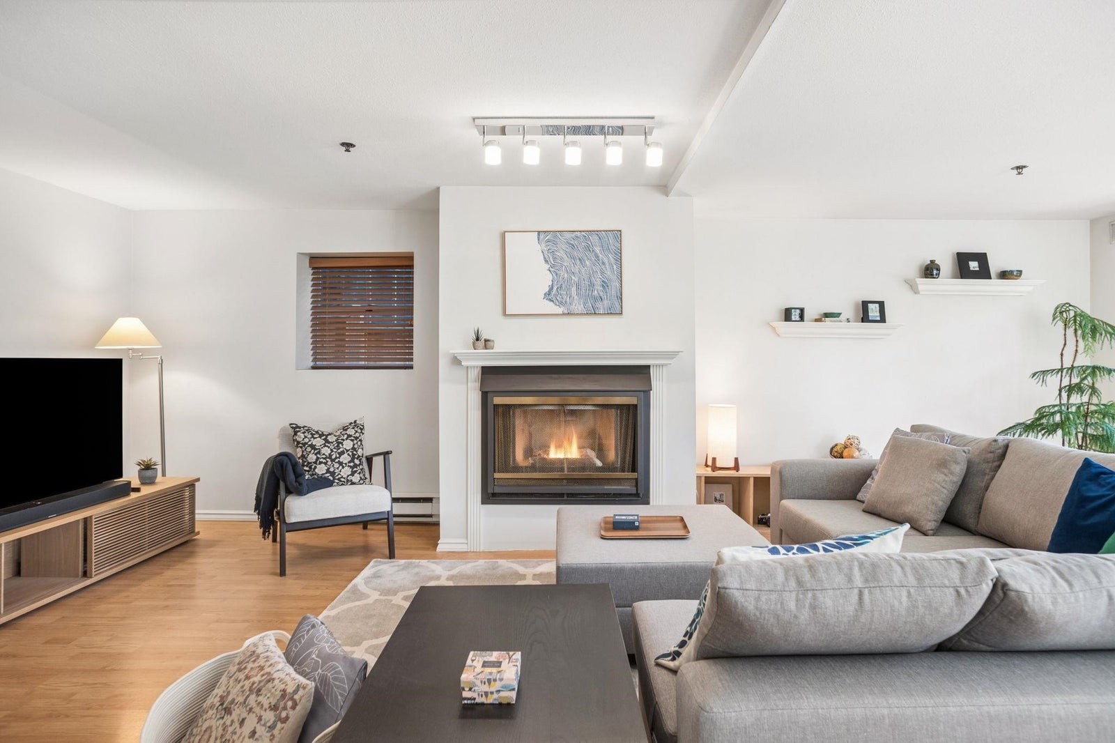 Expansive 1,386 sq. ft. open-plan, 2-bed, 2-bath duplex-style townhome in vibrant Main Street area! This bright, one-level home offers a functional layout and seamless indoor-outdoor living with a large, private 310 sq. ft. patio. Features include a full-sized kitchen and dining room, generous bedrooms and closet space, refreshed bathrooms, a gas fireplace, Mysa programmable smart thermostats, and a secured parking spot. Various updates throughout (W/D, HW Tank, Fridge). Just steps to Main Street, shops, Michelin Star restaurants, cafes, services, schools, transit, bike paths and parks. Rarely available boutique complex home in a lovely garden setting. Have your Realtor® book to view.