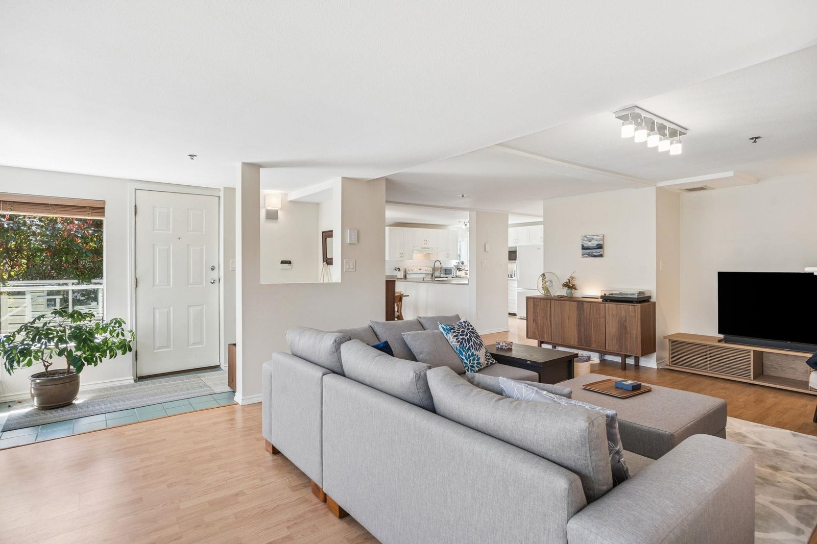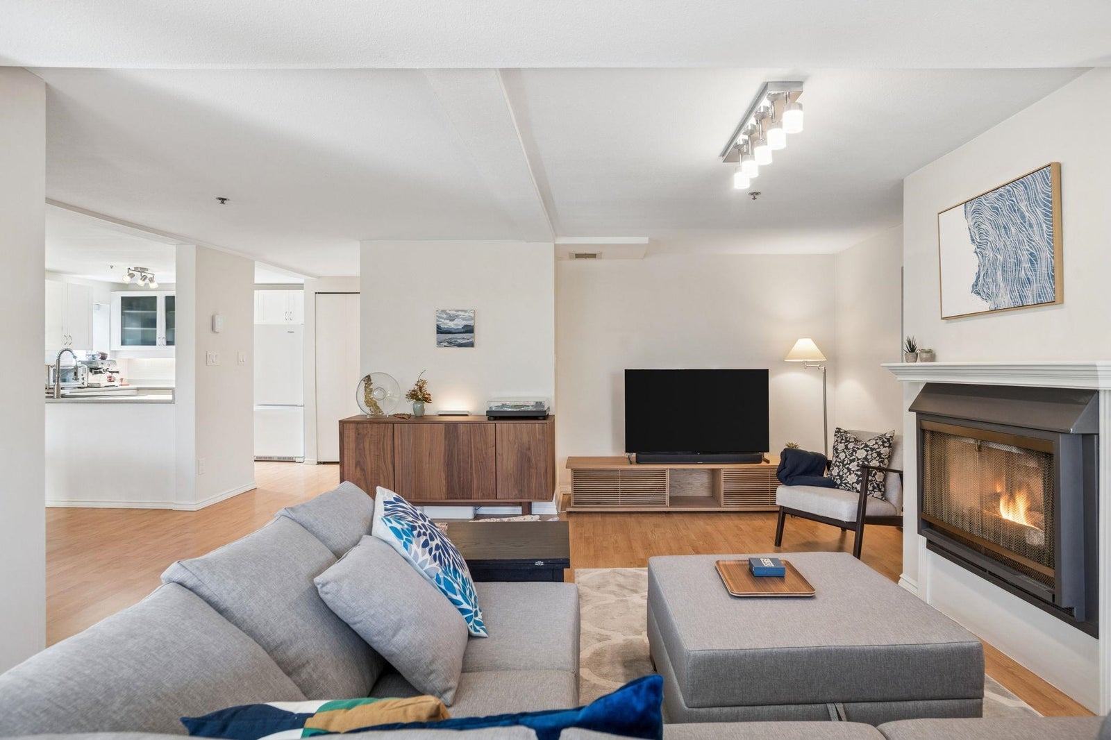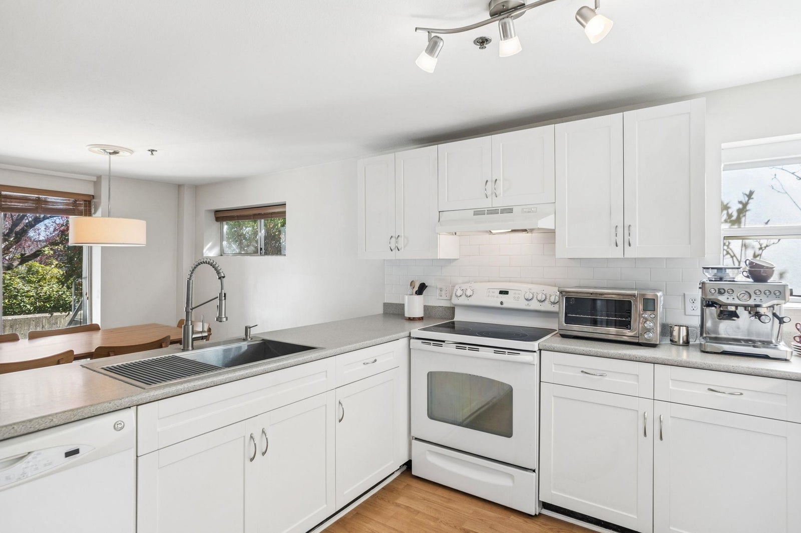 Expansive 1,386 sq. ft. open-plan, 2-bed, 2-bath duplex-style townhome in vibrant Main Street area! This bright, one-level home offers a functional layout and seamless indoor-outdoor living with a large, private 310 sq. ft. patio. Features include a full-sized kitchen and dining room, generous bedrooms and closet space, refreshed bathrooms, a gas fireplace, Mysa programmable smart thermostats, and a secured parking spot. Various updates throughout (W/D, HW Tank, Fridge). Just steps to Main Street, shops, Michelin Star restaurants, cafes, services, schools, transit, bike paths and parks. Rarely available boutique complex home in a lovely garden setting. Have your Realtor® book to view.